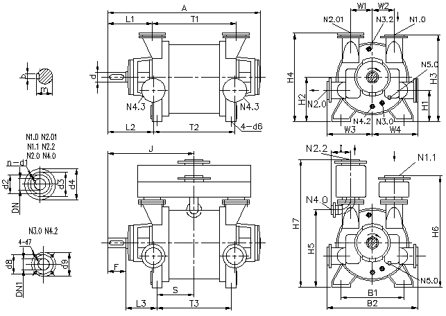 N1.0进气端法兰 N1.1连通管法兰 N2.0排气端法兰 N2.01上置排气法兰 |